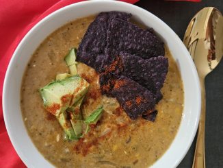 Diced onion Olive oil 2Tbsp 2 cups broth Can corn 15oz Can black beans 15oz 3/4 cup red dried lentil 15oz tomato sauce 3/4 cup […]